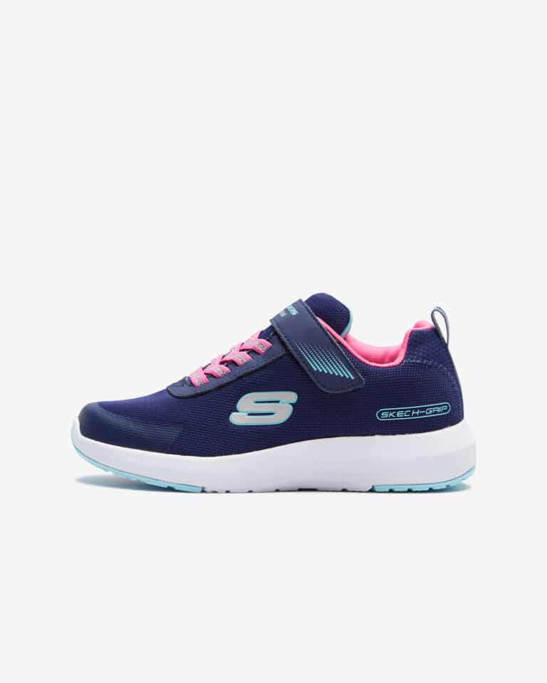 Ayakkabının yan kısmında Skechers logosu bulunurken, topukta yer alan gökkuşağı çizgili ağ kumaş kaplama çekme halkası ayakkabıya şık bir dokunuş katar. Elastik üst kayış ve ayarlanabilir yan cırt cırt kapatma ise çocuğunuzun ayakkabıyı rahatça giyip çıkarmasına yardımcı olur.